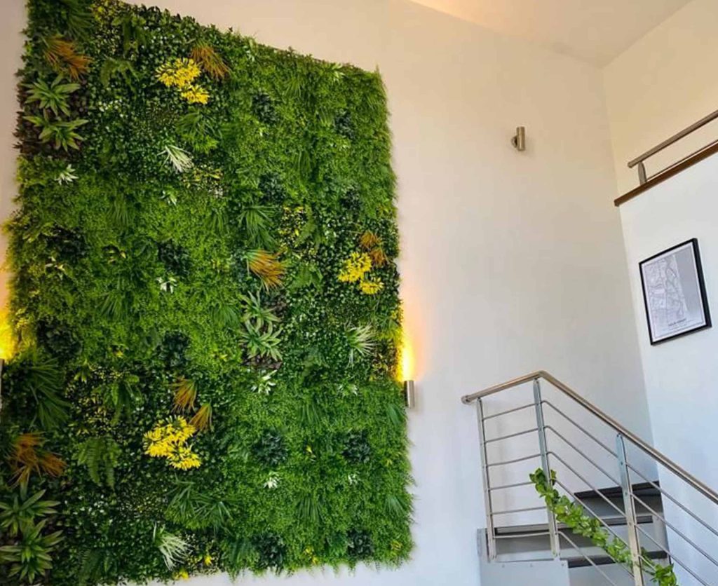 - Sin alérgenos: A diferencia de las plantas naturales, estos muros no producen polen, lo que los convierte en una opción segura para personas con alergias.